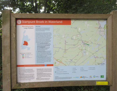 10,5 km, 50% onverhard. In natte tijden goede waterdichte schoenen aan. Horeca in Broek in Waterland. Honden verboden.