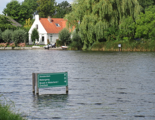 Omdat ik niet ver bij Watergang vandaan woon, stap ik daarom dit keer op het stalen ros en begin lekker opgewarmd bij Het Schouw, tegenover het pontje naar Landsmeer, de Laarzenpadroute. Via de Broekermeerdijk wandel ik eerst richting Broek in Waterland.