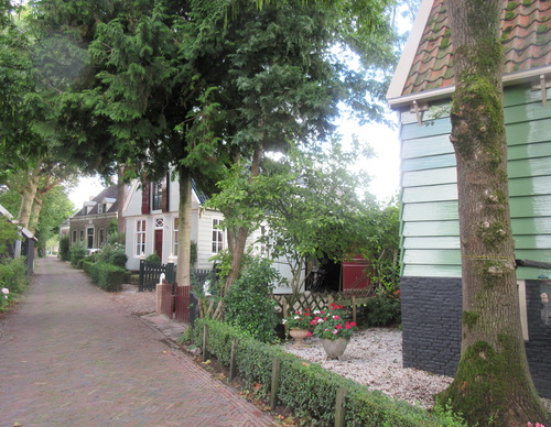 De prachtige huizen zijn bijna alle van hout en dat vergt veel en duur onderhoud. Maar alsof er een schilder politie is: alles zit prachtig in de verf. Overigens niet alleen in het karakteristieke Broeker grijs, maar we zien ook blauw, groen en geel geschilderde huizen. Kijk ook eens omhoog naar die prachtige ornamenten.