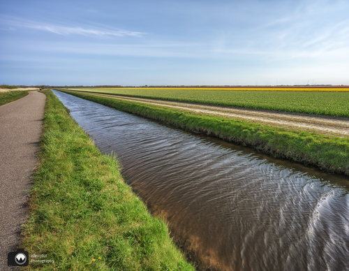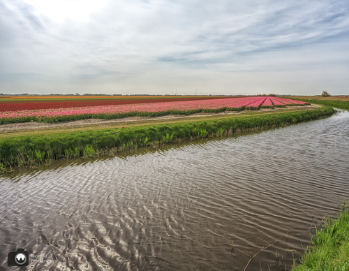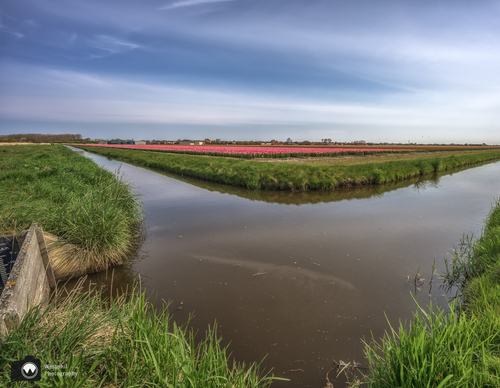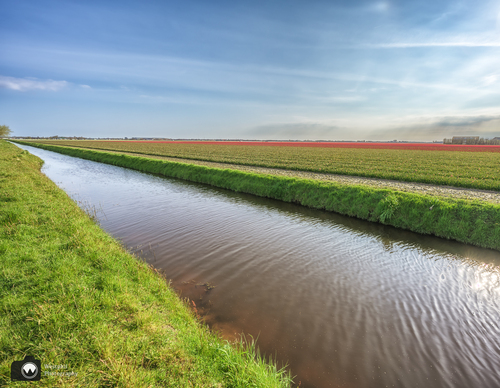 Zo mooi deze bocht in de sloot met op de achtergrond de tulpen.