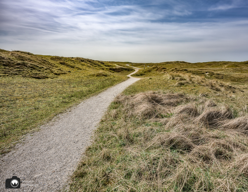 Wandelen door de duinen over een slingerend schelpenpaadje is geen straf.