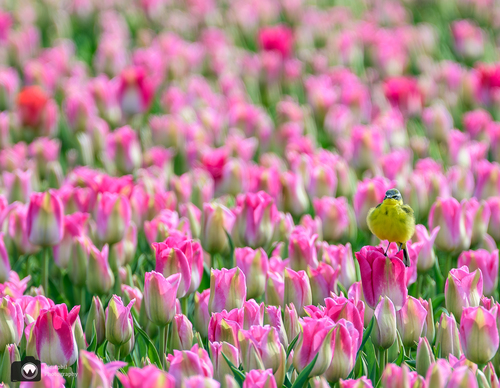 Een gele kwikstaart op een tulp, daar worden wij gelukkig van.