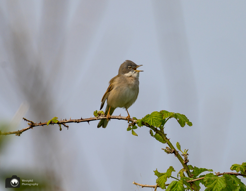Daarna zien we bovenin een bramenstruik een grasmus.