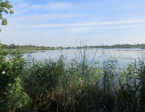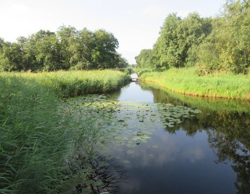 Tussen de hoge rietkragen heen zie ik de fraaie plassen met In het kraakheldere water bijzondere waterplanten als groot nimfkruid, waterlelies, blaasjeskruid en drijvend fonteinkruid. De ondiepe plassen zijn langzaamaan weer aan het dichtgroeien.
