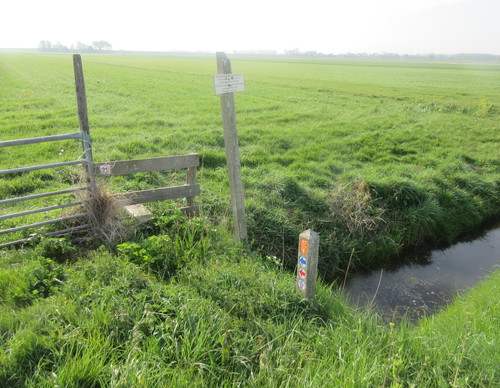 Goede waterdichte schoenen aan, want de route gaat ook door het weiland.