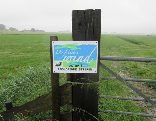 Het hoge gras is niet alleen de oorzaak van oververmoeide ledematen, ik mis ook een routepaaltje waardoor ik over het erf moet van een boze boerin. Als ze echter mijn natte outfit ziet en verhaal hoort, strijkt ze goedmoedig over het hart. "Kijk je straks even goed of je geen teken hebt", roept ze me zelfs nog na als ik voor het laatste stukje naar Winkel vertrek.