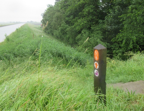 Ik weet wel dat tijdens het broedseizoen bepaalde delen van de Groetpolder voor wandelaars zijn afgesloten, maar niet dat er gedurende die tijd op sommige delen van de wandelroute ook niet wordt gemaaid. De dijk langs het Groetkanaal bijvoorbeeld is nu weer een heerlijke, zachte, groene wandelboulevard. Als ik echter begin juni even voorbij Kolhorn aan mijn weg terug naar Winkel begin, staat het gras bijna een meter hoog en is het drijfnat van de zacht, maar uiterst gestaag neervallende miezerregen. Onder die omstandigheden is wandelen bijna topsport...