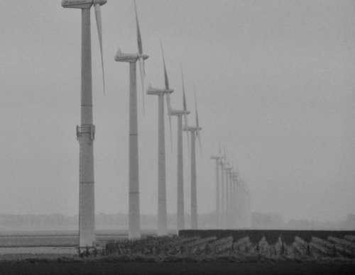 Eind 2015 stonden er 2525 windmolens op land, die 5% van de totale Nederlandse elektriciteitsbehoefte leverden. in 2020 moeten dat er zo'n vierduizend zijn. Daarom worden procedures voor aanleg en uitbreiding van windparken versneld. Zoals bijvoorbeeld hier in de Groetpolder, waar 12 van de 19 windturbines worden vervangen door grotere, dus krachtigere windmolens. Of dat genoeg is om die 24% te halen, durf ik echter te betwijfelen... Mensen hebben er hier gelukkig maar weinig last van, maar dat kan ook aan het gehoor van uw verslaggever liggen...