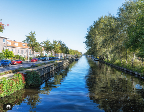 Hier is het even goed opletten want je moet niet het water blijven volgen, maar het Goudsbloemplein dwars oversteken. Je loopt dan onder een paar majestueuze kastanjebomen door. Uiteraard is er een paarse pijl aanwezig, maar let wel op want soms kun je er makkelijk aan voorbij lopen.