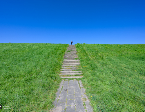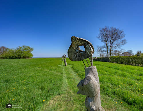 Als we bij de dijk zijn zien we een hoge paal staan. Het kunstwerk “Kijk over de dijk” van Niko Hoebe.