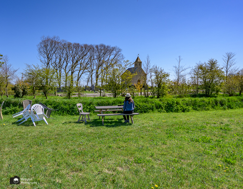 We komen uit bij de Heidense Kapel van Stroe. Op deze plek heeft lang geleden al een kerk gestaan. Het huidige kerkje is nieuw en is geopend in 2016. Van Stroe wordt over het algemeen aangenomen dat het één van de oudste dorpen van Wieringen is. We nemen een kijkje in de kerk en lopen naar de picknickplaats naast de kerk. Daar eten we onze meegebrachte broodjes.