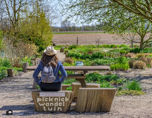 Aan het begin van het natuurgebied staat een picknicktafel. Het is nog geen lunchtijd, maar ik grap al dat wanneer we het rondje gelopen hebben, de tafel bezet zal zijn.