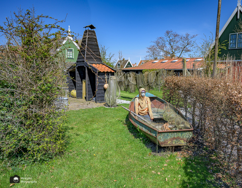 Als we bijna alle bloemen op de foto hebben gezet, lopen we weer terug naar knooppunt 50. We vervolgen onze weg terug naar de Waddendijk. We komen langs recreatiepark Wiringherlant. Dit weggetje is nieuw voor ons. Het park is leuk ingericht; het lijkt wel een openluchtmuseum.